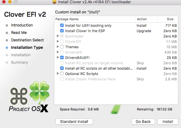 Ardından Clover Bootloader kurulumunu aşağıdaki gibi yap.