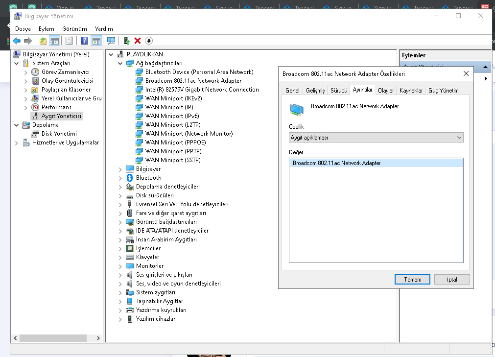 Rica etsem aygıt yöneticisinden wifi kartını seçip bios adı bölümündeki uzun yazıyı paylaşırmısın