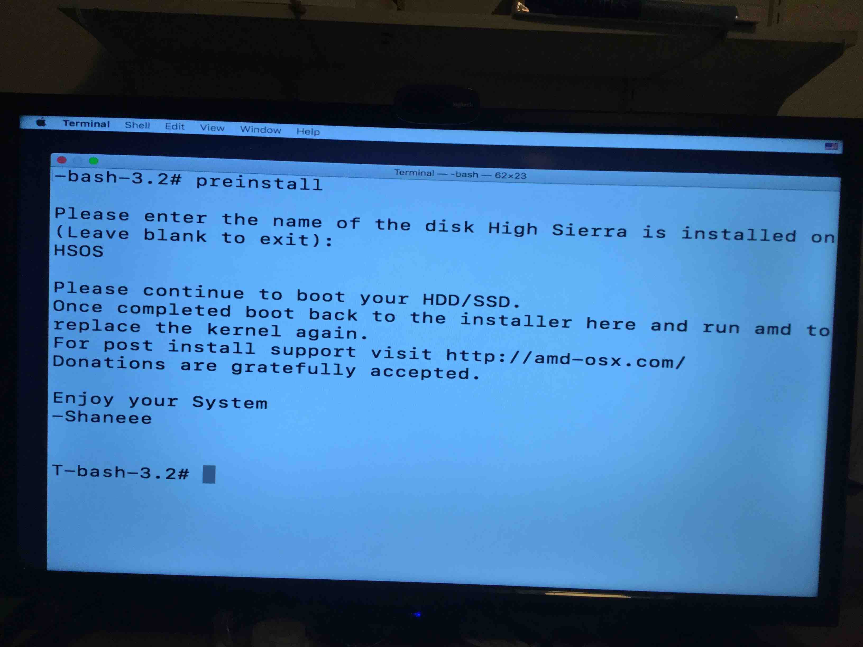 Eğer işlem başarısız olursa önce "cd /Volumes/HighSierraAMD" yazın ve Enter'a basın; sonra "preinstall yazarak deneyin"