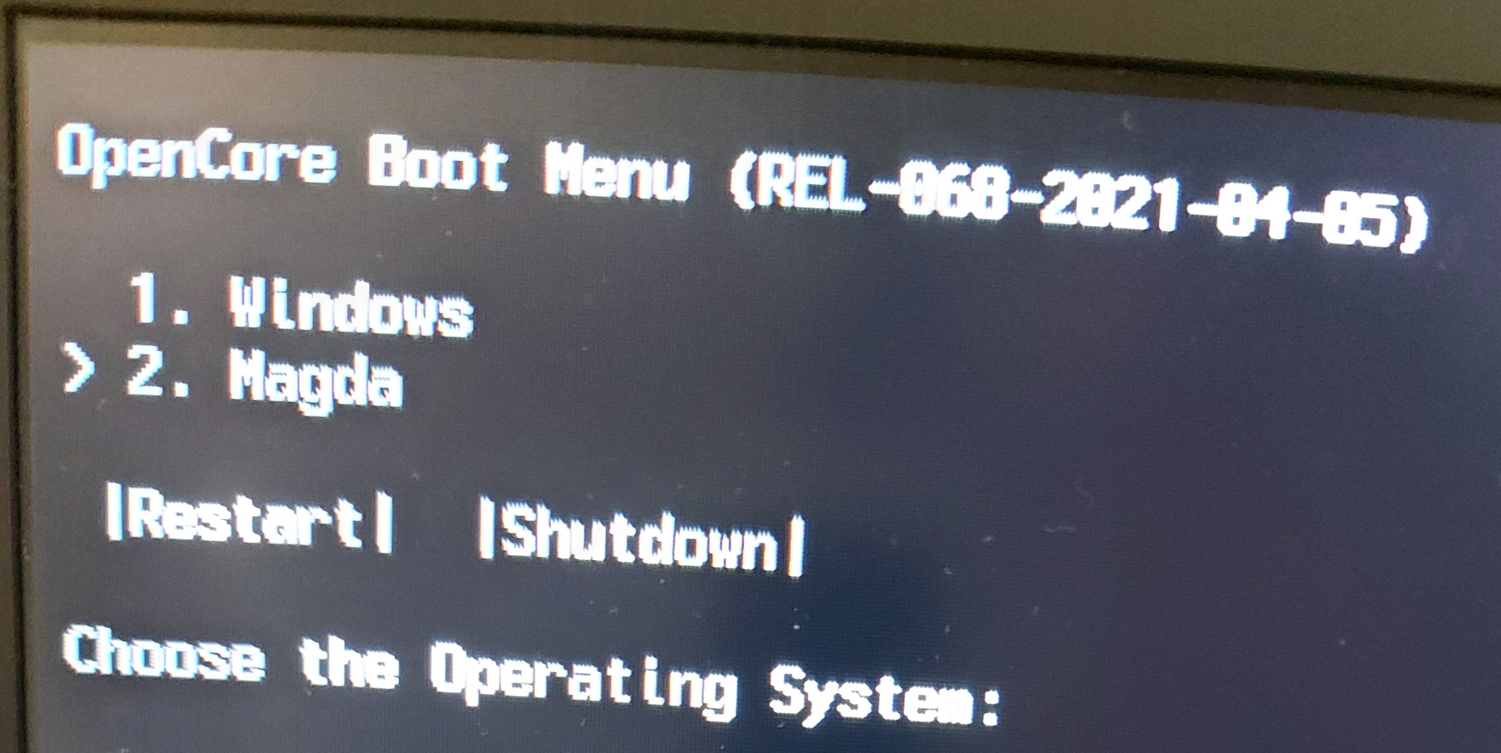 edit: OpenCore canopy olsun, Image'larım olsun, Resources'lar olsun hepsi EFI'de var ama üç dört satırlık bir şey beni karşılıyor. 1'e basınca Windows, 2'ye basınca Big Sur açılıyor nedeni ne bu illetin?