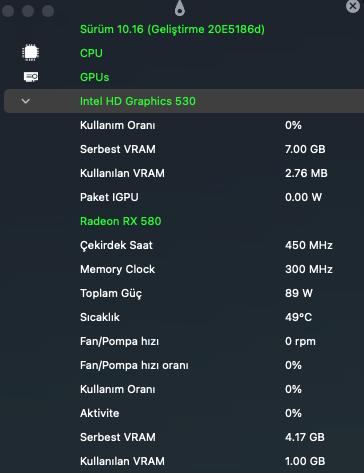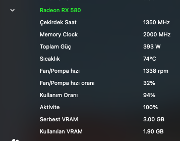 Peki hocam 840m için devredışı bırakmak gerekli midir? Yoksa hackintool-framebuffer yamasından devre dışı bırakmam yeterli midir?RX 580 kartının (ki çoğu modern AMD kart) zaten kendi içinde güç yönetimi ile geliyor. Bu kartlar 60 derecenin altında fan açmaz. Örnek olarak benim RX 580 kartımın bilgisini görebilirsin.