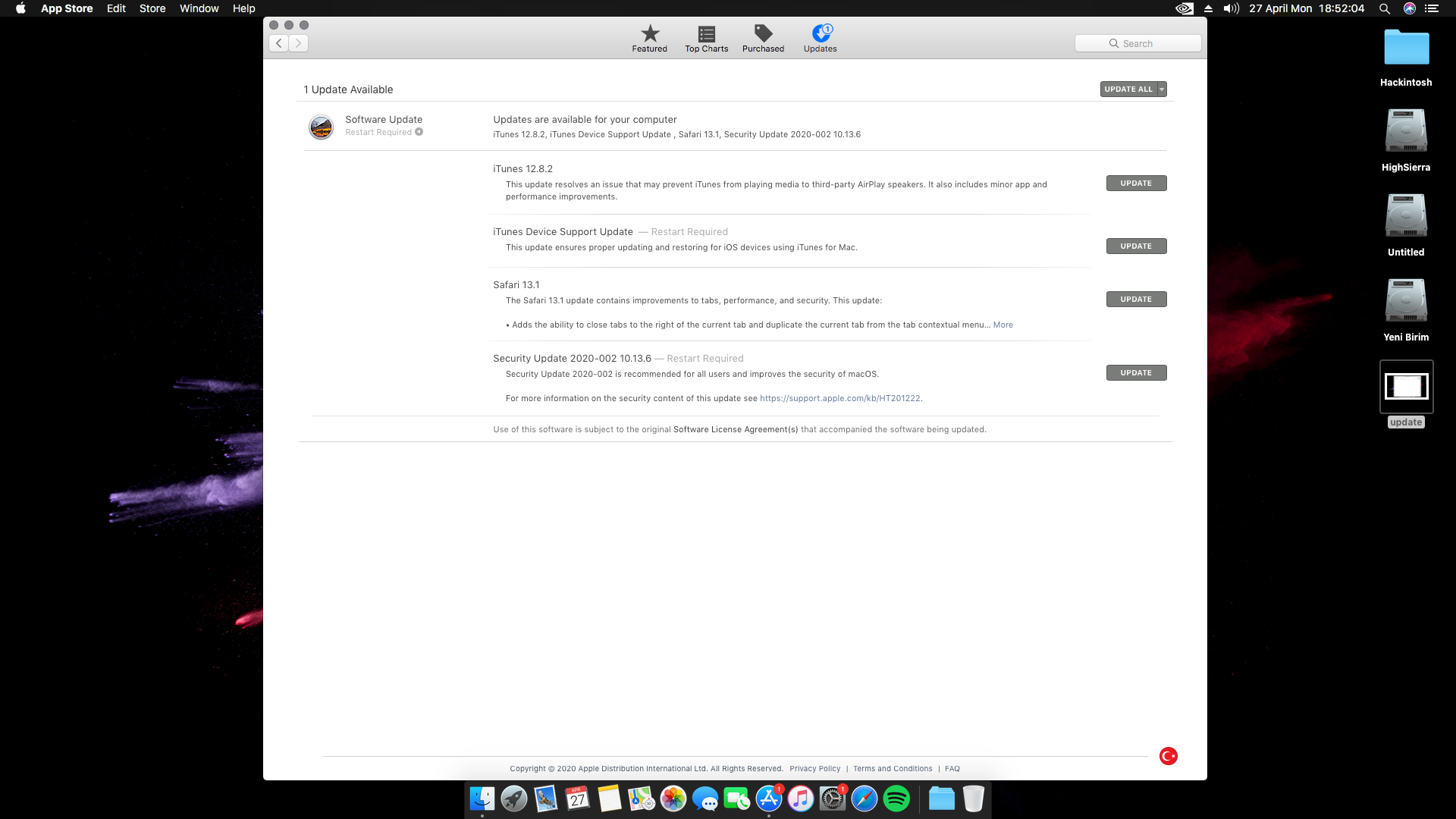 Update: yalnızca önceki sürümler, örneğin 10.13.1'den 10.13.2'ye kadar güncelleyin.